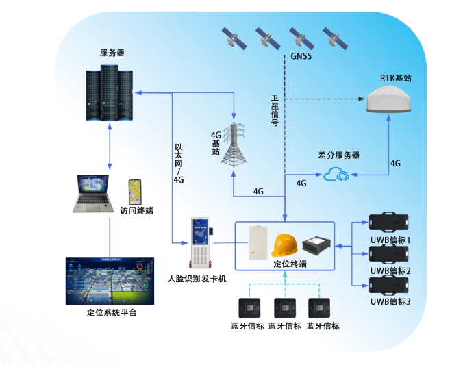 根據坑口環境特點與人員定位需求,新銳科創推出了RTK+UWB+藍牙三融合定位系統,該系統結合了北斗RTK(實時動態載波相位差分技術)、UWB(超寬帶)和藍牙三種定位技術的優勢,實現了室內外無縫高精度定位,為坑口人員定位提供了全新的解決方案。